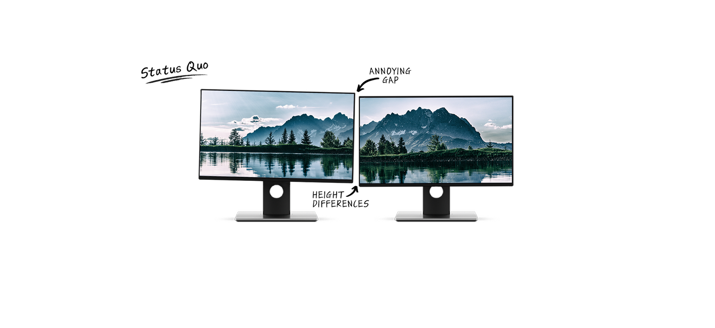 Häufig störend: Die Lücken, die sich zwischen den Monitoren befinden. Diese sind nicht nur lästig für das Auge, sondern auch für den Gesamteindruck des Setups. Der screenbuddy® verschafft Abhilfe!
