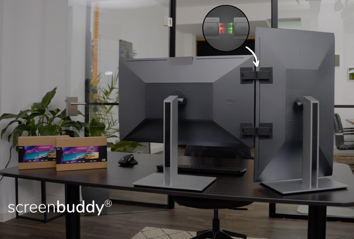 Der screenbuddy® bietet Dir ein praktisches Add-On, um Deine Bildschirme in ihrer idealen und ergonomischen Ausrichtung nahtlos zu fixieren. So perfektionierst Du deinen Arbeitsplatz.
