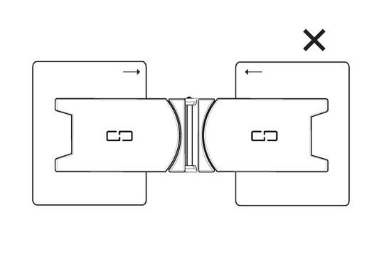 🇬🇧 Stick one wing to the vertical top (horizontal left) edge of your screens and apply sufficient pressure evenly for about 5 sec. Now glue the second wing to the bottom (right) edge of your screens following the same procedure.