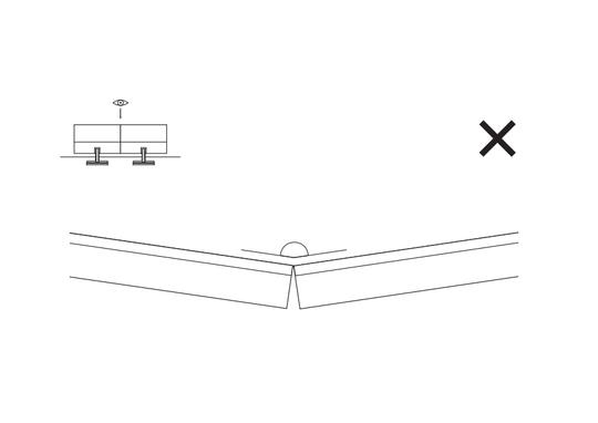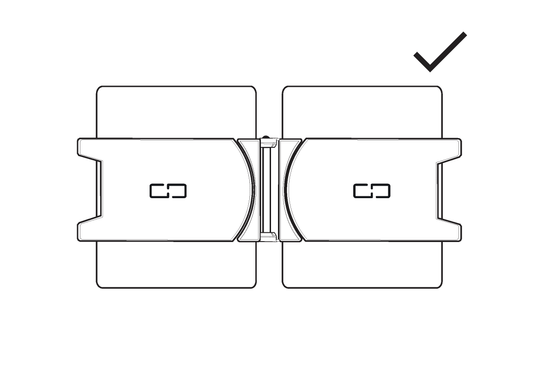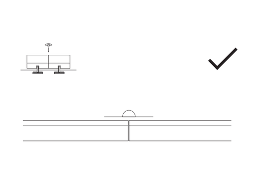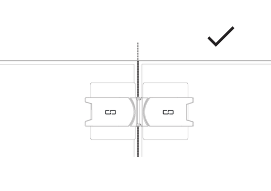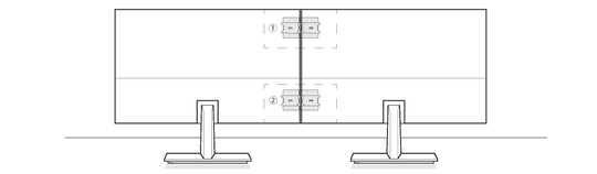 🇩🇪 Gerade Ausrichtung der zu verbindenden Bildschirme nebeneinander, sodass kein vertikaler Winkel und horizontaler Höhenunterschied entsteht. Stellen Sie sicher, dass keine Lücke mehr vorhanden ist.